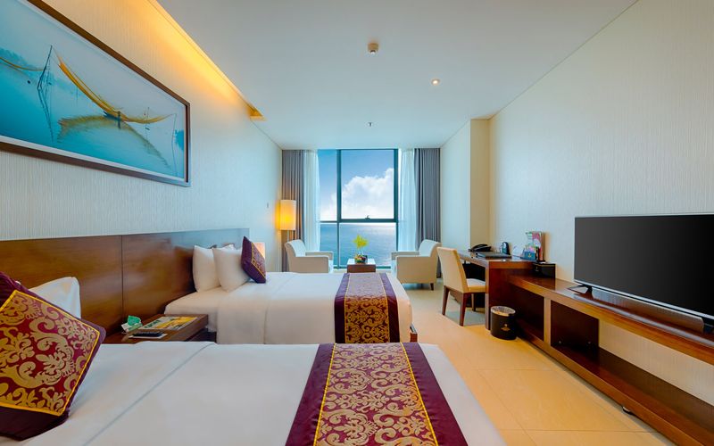 Phòng Superior Sea View Diện tích: 31m2 Phòng hướng biển Phòng dành cho 02 người lớn và 02 trẻ em. Phòng có 01 Giường Đôi hoặc 02 Giường Đơn
