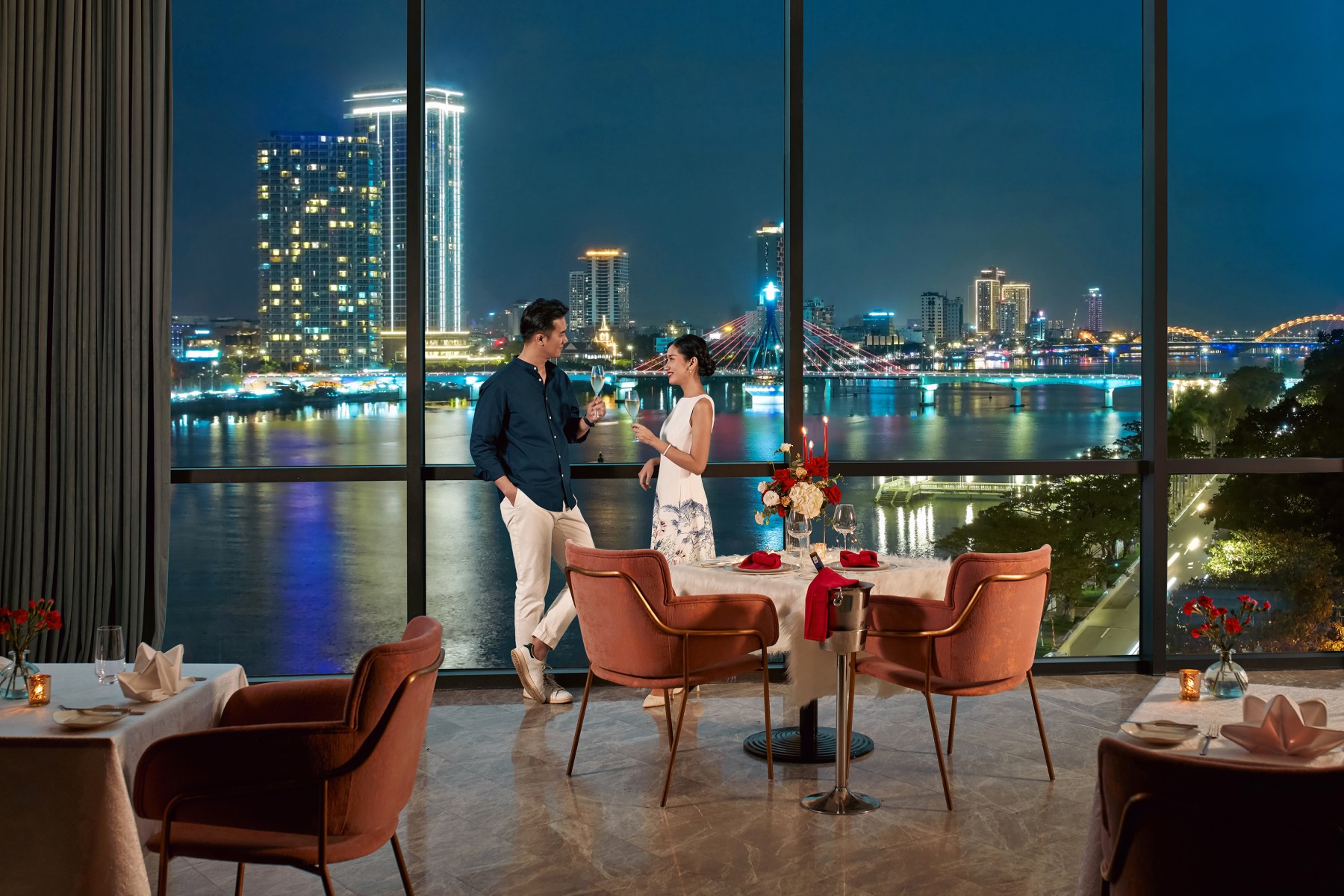 Tọa lạc tại vị trí đắc địa, The Square sở hữu tầm nhìn ngoạn mục ra cầu Rồng và cầu Sông Hàn, khiến không gian càng thêm ấn tượng. Cửa kính lớn từ trần đến sàn cho phép bạn chiêm ngưỡng cảnh hoàng hôn tuyệt đẹp hoặc hòa mình vào vẻ lung linh của thành phố về đêm – là lựa chọn lý tưởng cho những buổi tiệc lãng mạn, sinh nhật hay những buổi tụ tập bạn bè.
