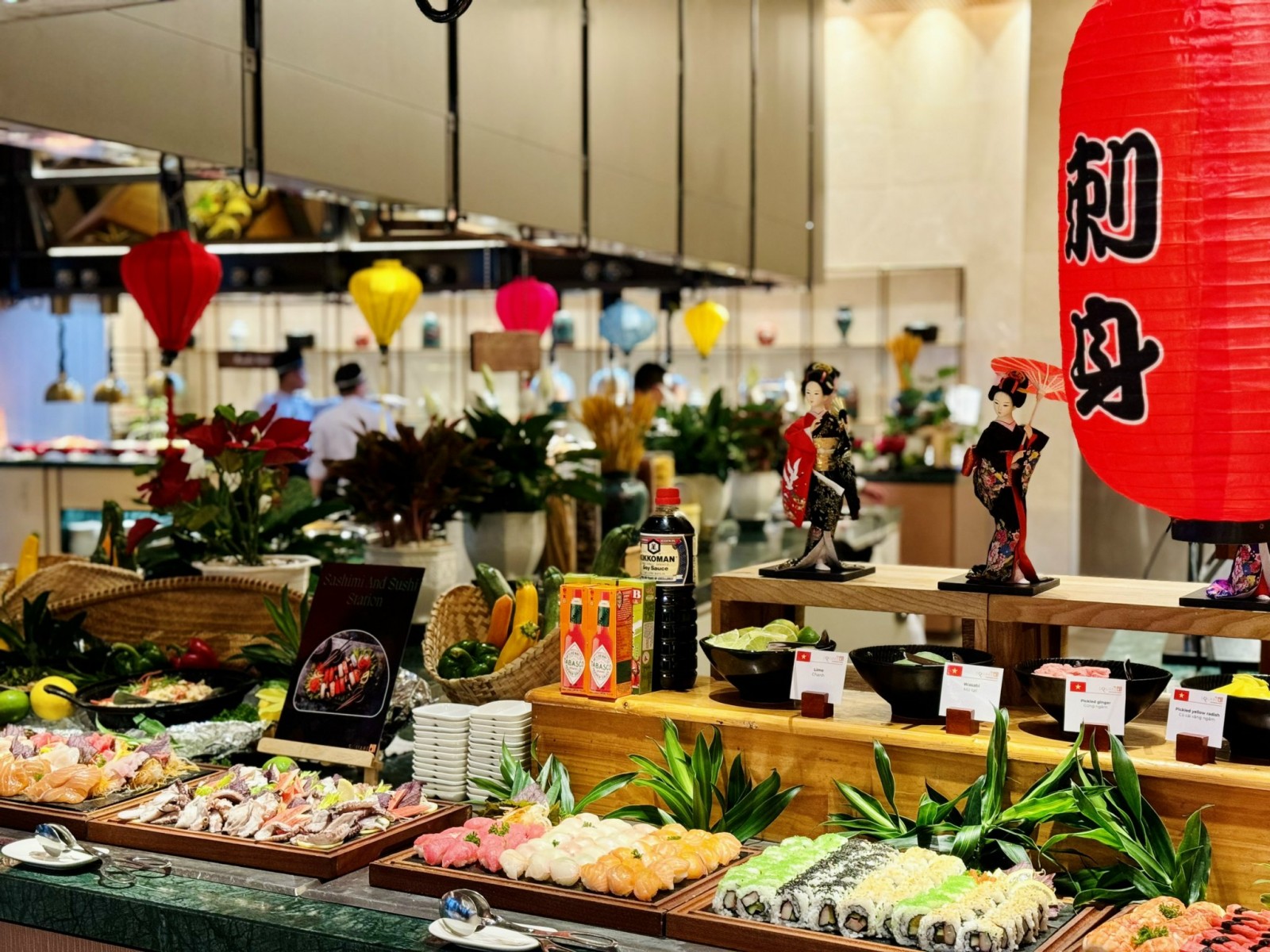 Đặc biệt, nhà hàng còn tổ chức chương trình buffet theo chủ đề hàng tuần, đưa thực khách chu du qua những vùng đất ẩm thực đặc sắc của châu Á. Mỗi lần ghé thăm là một cơ hội để thưởng thức những món ngon mới lạ, khiến bạn luôn muốn quay lại để trải nghiệm thêm.
