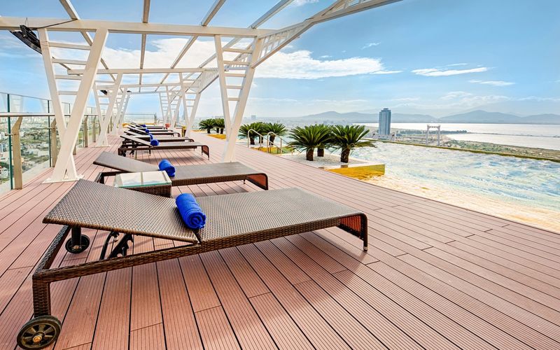 Khách sạn có 01 hồ bơi ngoài trời nằm ở tầng 29 với tầm nhìn vô cực ra sông Hàn. Đặc biệt, đây là hồ bơi dát vàng 24k với cảm hứng thiết kế từ sự vô tận của trời biển. Độ sâu nhất của hồ bơi là 1,8m.Hồ bơi trẻ em nằm cạnh hồ bơi người lớn với độ sâu tầm 0,5m.