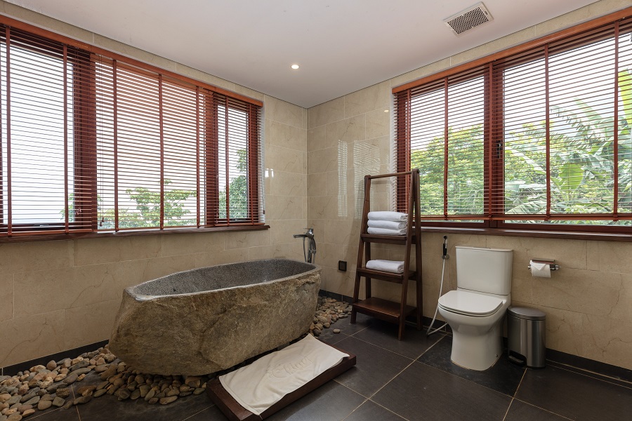 Là hạng phòng cao cấp nhất tại Ebino Pù Luông Resort, Phòng Honeymoon Bungalow sở hữu phòng ngủ thoải mái và trang nhã cùng thiết kế tinh tế. Nội thất gỗ hiện đại được bài trí hợp lý, tối đa sự tiện nghi và thoải mái. Căn phòng như đưa du khách đến gần hơn với thiên nhiên qua bức tường hoàn toàn bằng kính. Từ ban công của phòng mình, bạn đã có thể đắm mình ngắm nhìn núi rừng trập trùng cùng những thửa ruộng bậc thang trải dài mênh mông.