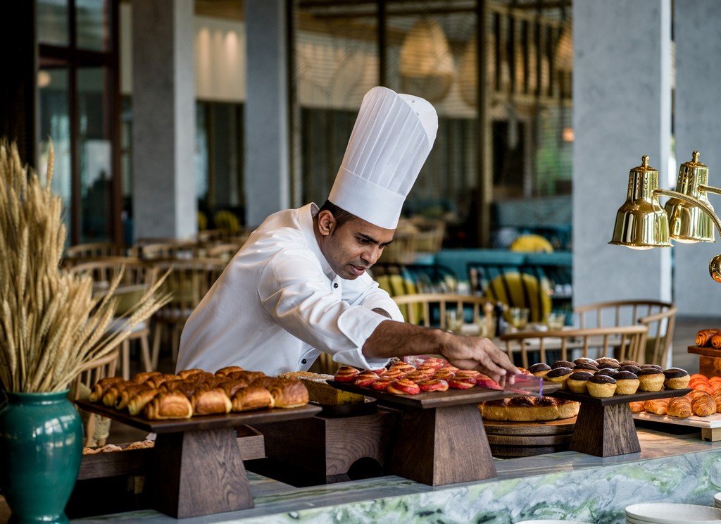 Nhà hàng The Bay Kitchen: Với không gian nhiệt đới rộng mở đón ánh nắng tự nhiên sẵn sàng mang đến cho thực khách từ những món ngon Việt Nam, đến tinh hoa ẩm thực Á Đông hay phong vị tinh tế phương Tây. Bữa sáng tự chọn theo kiểu quốc tế được chế biến ngay tại không gian bếp mở cùng các món đặc sản đa dạng khác của địa phương sẽ mang lại một trải nghiệm thú vị cho thực khách.