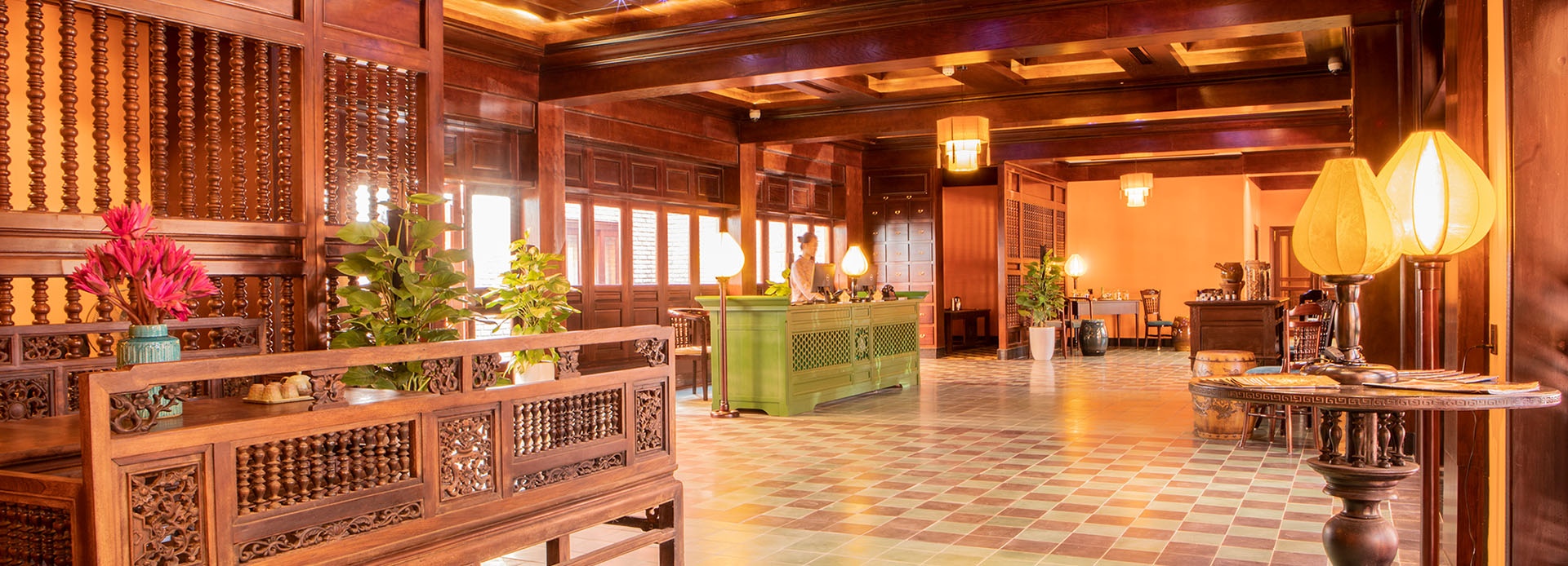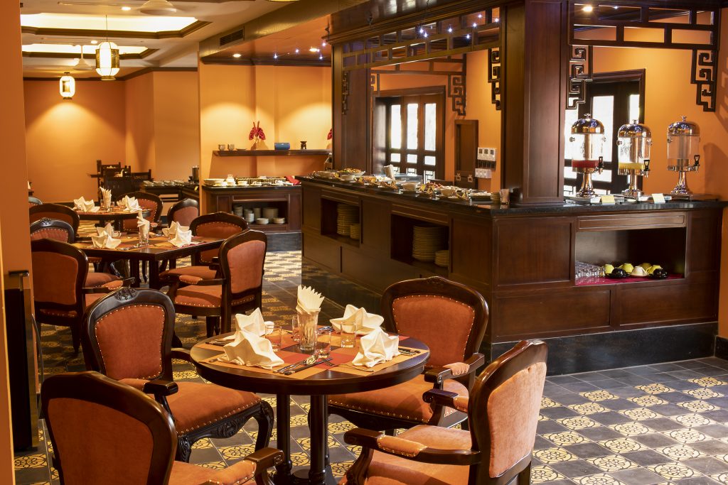 Nằm trong khuôn viên sân vườn của khách sạn, nhà hàng Đại Nam kết hợp đặc sản địa phương với hương vị châu Á và Huế tạo nên những bữa tiệc cung đình hiện đại, đáng nhớ. Hãy khám phá không gian độc đáo này và bắt đầu hành trình ẩm thực của bạn khi ngồi bên chiếc bàn có đồ nội thất nguyên bản sơn mài và được bao quanh bởi các chi tiết trang trí tinh xảo.