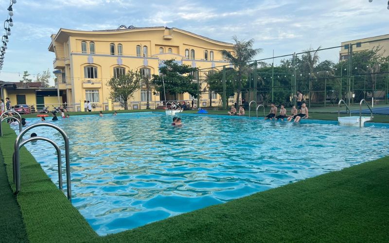 - Bể bơi ngoài trời xanh mát: Không gian rộng rãi giúp du khách có thể thư giãn trong làn nước nước trong veo, ngắm bầu trời rộng lớn và tận hưởng sự an yên tuyệt đối.
